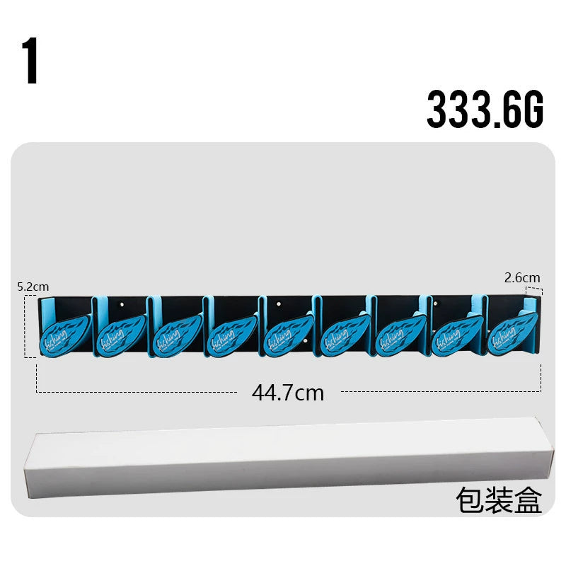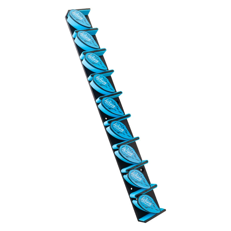 Angelrutenhalter mit 9 Haken und Federmechanismus – Wandmontage ohne Bohren für Köder und Spinnruten, platzsparender Organizer für Garage, Balkon oder Angelzimmer